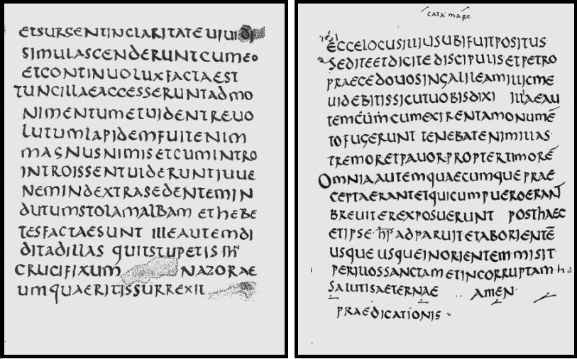 Codex Vaticanus (B) (digitally altered) - Using lettering from elsewhere on the page, Mark 16:9-20