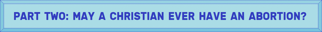 not know if a soul inhabits the body of an individual before the tenth week after conception, we have a responsibility to co- operate with what appears to be a divine intention to bring forth a child. Knowing that "children are a heritage of the LORD" (Psalm 127:3), as hospitable people, Christians ought to welcome God's gifts and the responsibilities to which He calls us. Therefore it is immoral to procure an abortion, except in cases such as the ones described in Part Two.